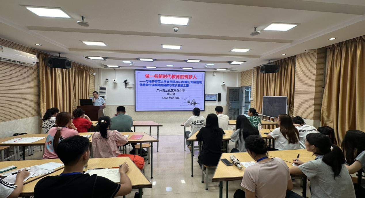 同日下午,从化中学党委书记廖志坚为见习生开展了“做一名新时代教育的筑梦人——与betway必威西汉姆联官网文学院2023级陶行知实验班优秀学生谈教师的自律与成长发展之路”的专题讲座。