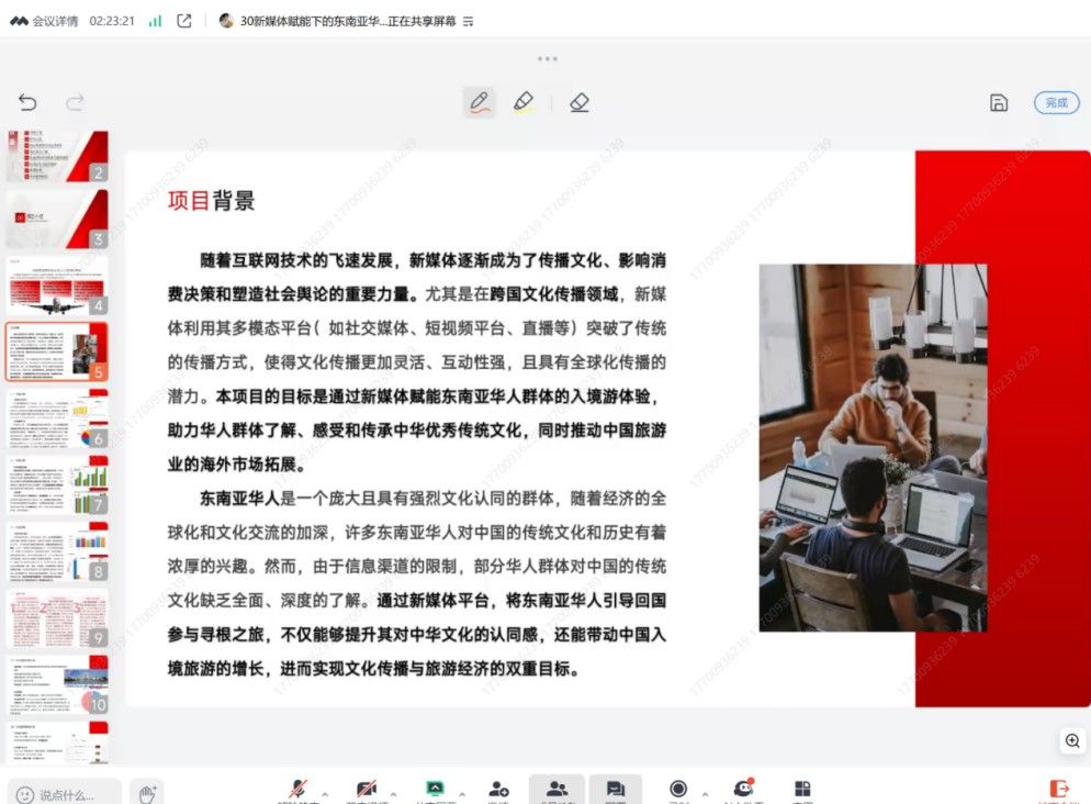 本次创新大赛的高教主赛道和“青年红色筑梦之旅”赛道的234支参赛团队负责对其团队的各项目进行线上展演。各参赛团队通过精心制作的PPT,围绕非遗文化、“互联网+”、红色文旅、传统产业转型等主题展开生动的讲解和精彩的答辩,全面展示了项目的创新性、可行性和市场前景。在高教主赛道,各团队负责人紧密联系生活实际,深入剖析项目背景、市场现状、发展态势及创新发展点,充分展现了扎实的专业知识和创新思维。在“青年红色筑梦之旅”赛道,参赛团队深挖红色文化内涵,结合时代发展需求,积极探索红色文化传承与创新的新路径。