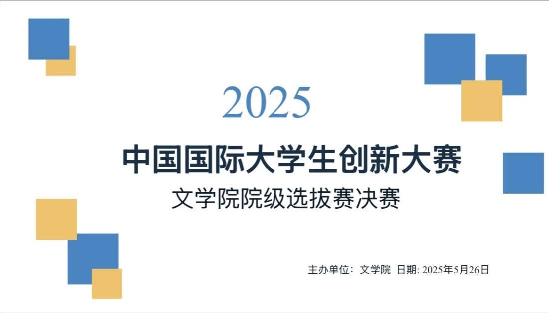 为提升同学们的创新能力,促进就业创业,文学院于5月26日晚在线上举办2025年中国国际大学生创新大赛院级选拔赛。文学院中国国际大学生创新大赛(2025)评审专家组、辅导员及团委学生常委团出席本次大赛。