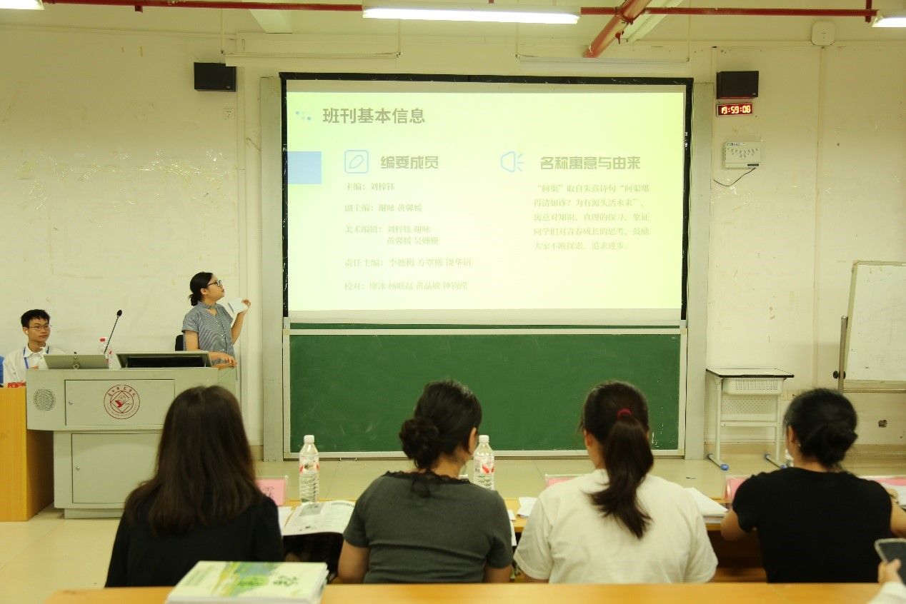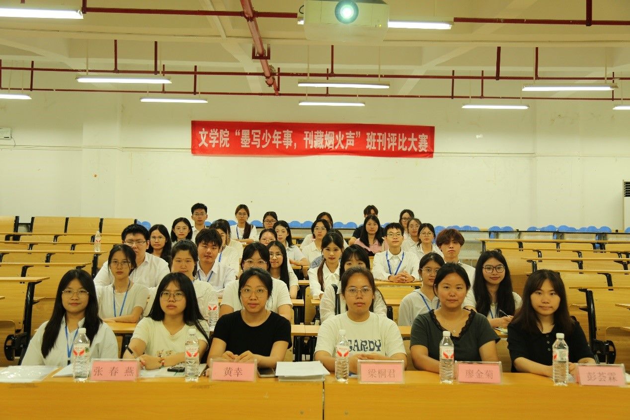 为展现班级文化特色,激发学生创新创作能力,营造积极向上的校园文化氛围,6月14日晚,文学院班刊大赛决赛在文综楼501教室举行。文学院兼职辅导员梁桐君、廖金菊,团委学生会常委团彭荟霖、张春燕、黄幸作为评委参加此次大赛。