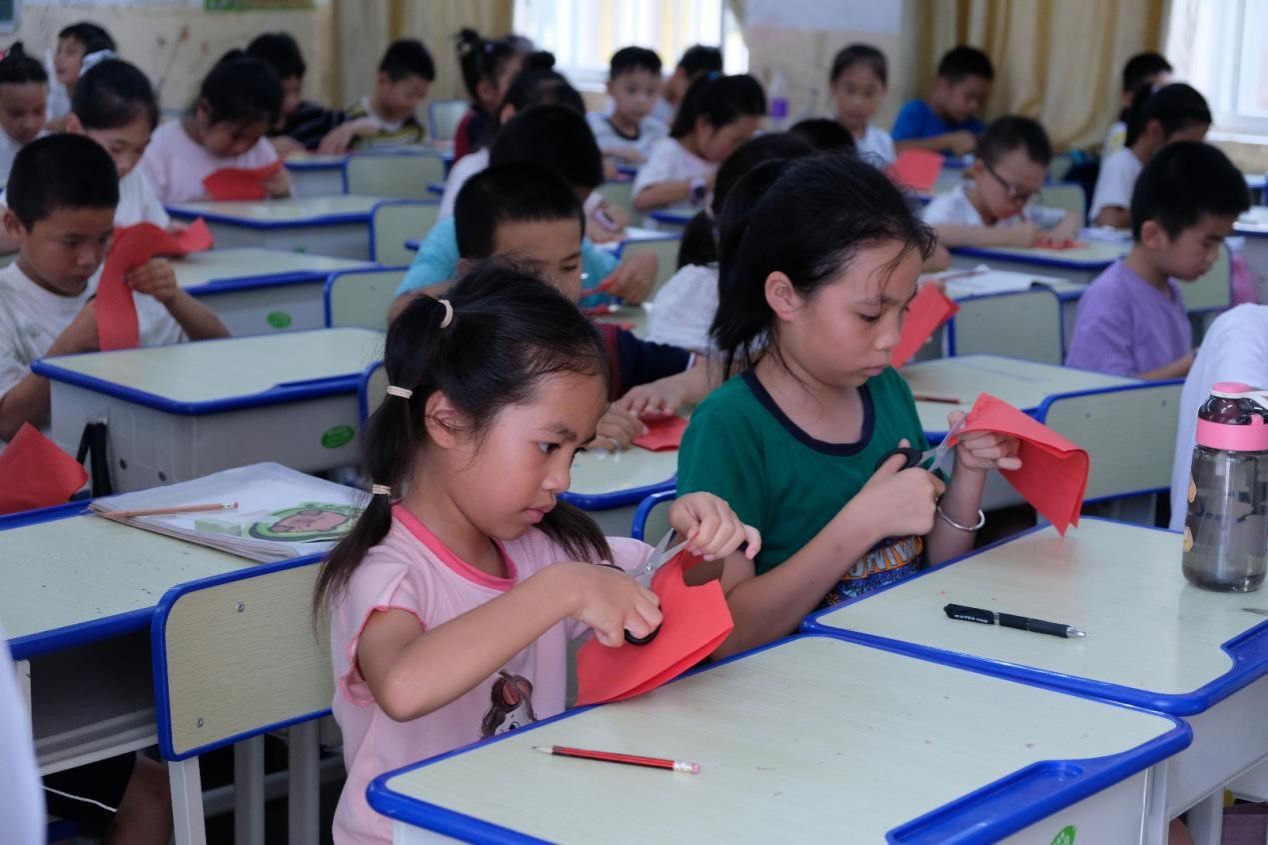 在最后的艺术鉴赏课堂中,支教组以剪纸为载体,带领学生动手制作,培养学生们的想象力与动手能力。除了课堂授课外,支教组还进行了学生的作业辅导,帮助学生解决暑假作业难题。在辅导结束后班主任开展了生命安全教育课堂,筑牢学生的生命安全意识。