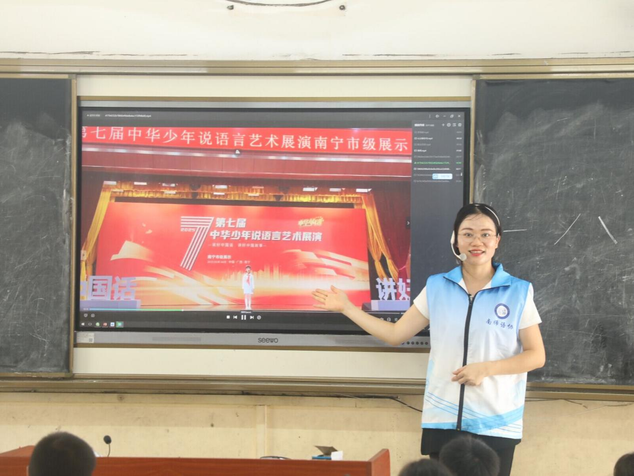 同时,钟振花老师为孩子们带来了朗诵小技巧的课程。她着重讲解了语气在朗诵中的重要性,包括语调的抑扬顿挫、情感的细腻表达以及肢体语言的配合等方面。为了让学生们更好地理解和掌握这些技巧,钟老师结合实际朗诵比赛视频,展示了同年龄段学生的精彩表现,为孩子们提供了直观的学习范例。孩子们看得聚精会神,纷纷表示要在今后的朗诵中运用所学技巧,展现出更好的自己。