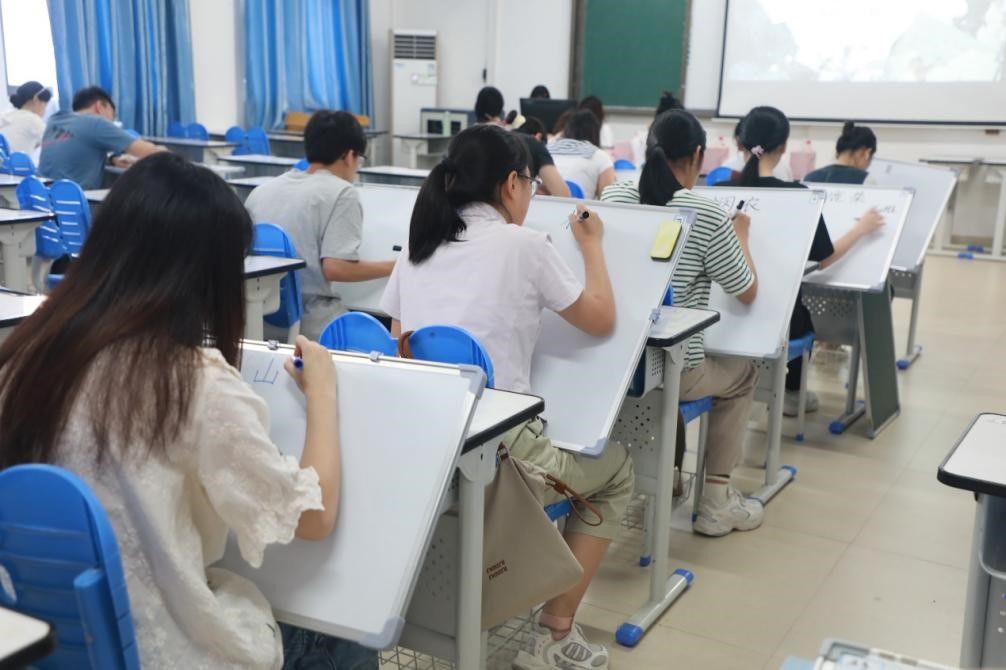本次比赛共分为粉笔字、马克笔字现场书写,硬笔、毛笔书法作品现场评分及后期易班线上投票三个环节。经过初赛的层层选拔,共有25位选手入围本次决赛。参赛选手们以沉稳的姿态运笔,屏息凝神,全身心投入在书写之中。他们的一笔一画,一张一弛间,尽显文字艺术的魅力,也透露着对书法艺术的热爱。
