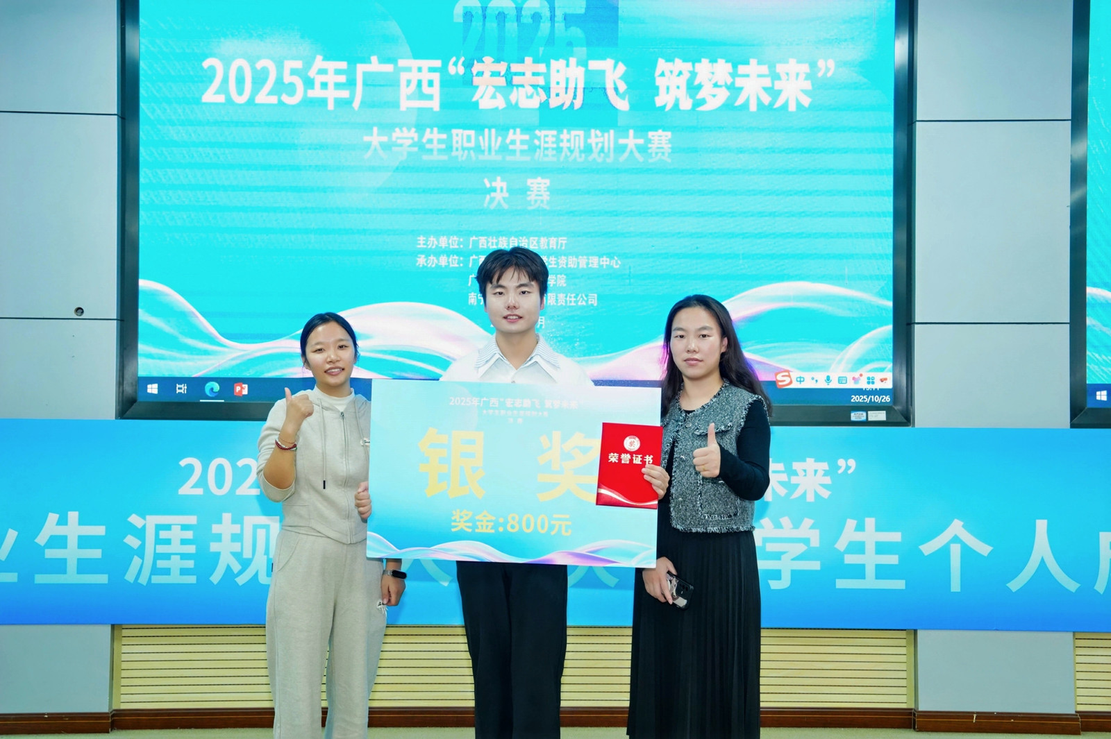10月26日,由广西壮族自治区教育厅主办的2025年“宏志助飞 筑梦未来”广西大学生职业生涯规划大赛决赛顺利落下帷幕。赛事覆盖全区高校,经6月底初赛严格遴选,共有20名选手晋级决赛。