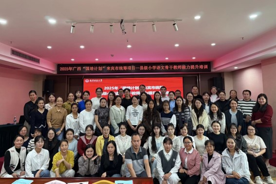 近日,betway必威西汉姆联官网承办的2025年广西“国培计划”来宾市统筹项目——县级小学语文骨干教师能力提升培训,按计划完成11月1日至8日的全部课程,培训各项工作顺利开展。培训聚焦信息技术与语文融合、跨学科教学、核心素养培育等议题,以专题讲座、基地研修、实践研讨等形式,为来宾市骨干教师搭建专业成长平台。