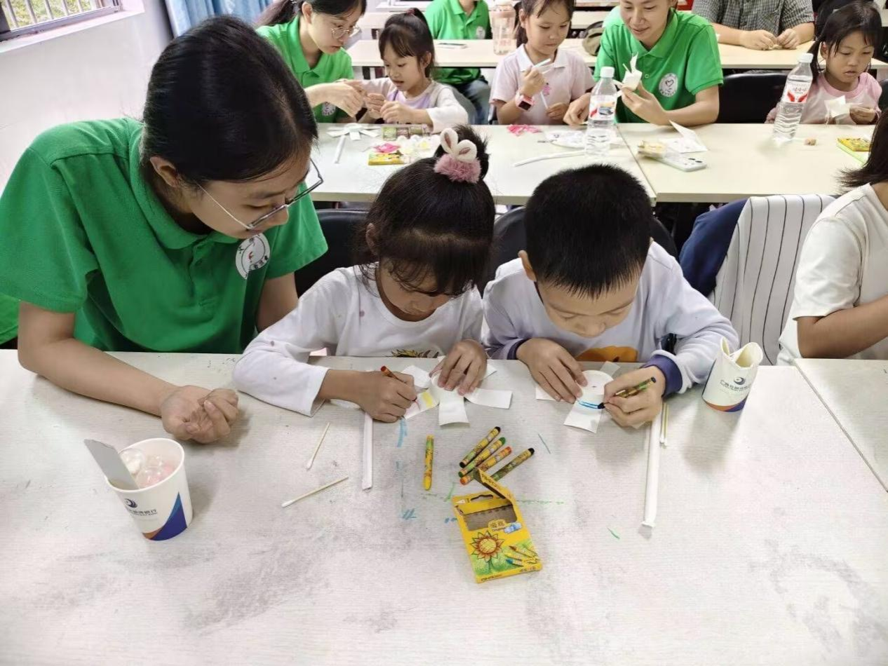 在课堂设计上,志愿者们注重启发与互动,课前准备充分,PPT课件制作生动有趣,课堂环节设计独具匠心。在四期课堂中,志愿者们均从孩子角度出发,在讲解过程中辅以视频解析,激发孩子们上课兴趣,让孩子们轻松理解知识点,同时还设置知识问答小环节,让孩子们在回答问题过程中加深对知识点的印象,将所学知识运用到生活中。每一期活动的最后,志愿者都会与孩子们利用一些环保材料变废为宝,制作好玩又实用的手工艺品,既增强了课程的趣味性和参与感,也在轻松愉快的氛围中巩固了环保知识,培养了孩子们的团队协作意识和动手能力。