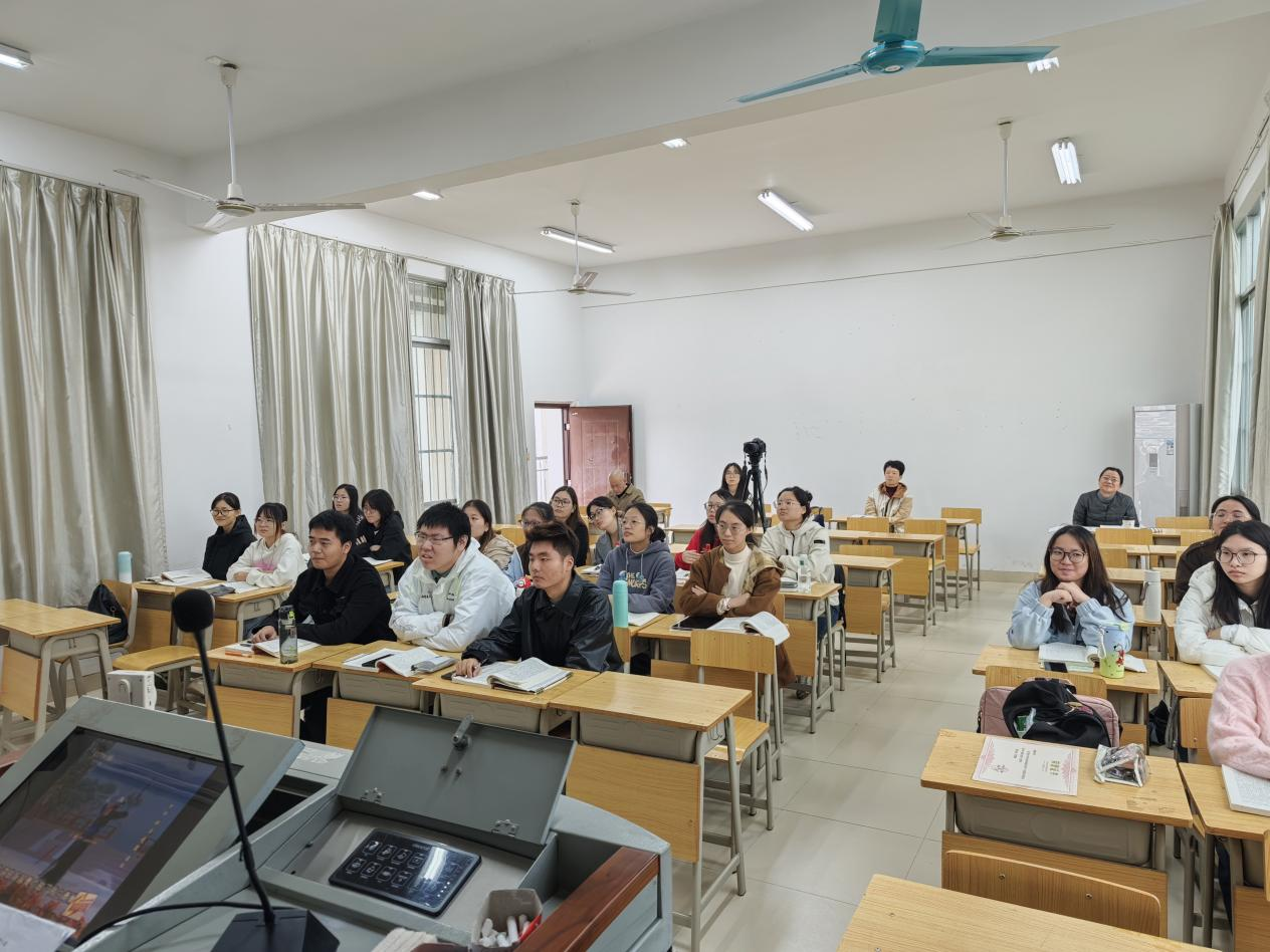 为丰富教学实践,提升教学质量,11月18日上午,文学院中国古代文学教研室本学期的公开课教研活动顺利开展。活动以“公开课展示+集中评课研讨”的形式展开,由教研室主任黄昌宇博士主讲,授课对象为23级陶行知实验班学生。汉语言文学专业负责人石艺教授,23陶班班主任梁晗昱博士,以及莫山洪教授、许彰明副教授、王茁博士等多位资深教师共同参与听课与点评,为课程质量“把脉问诊”。