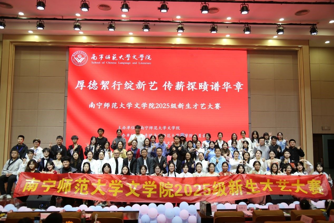文学院于2025年12月7日在文综114报告厅举行2025级新生才艺大赛。学院党委书记石勇、副院长(主持行政工作)刘振平、副书记吴幼坚、副院长张淑云,学院教师代表,25级各班班主任及辅导员出席本次比赛。
