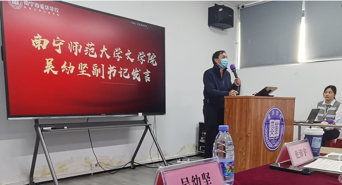 文学院党委副书记吴幼坚对爱华学校的悉心指导表示感谢,并勉励全体实习生秉持教育初心,在实践中勤于反思、善于学习,努力朝着“四有”好老师的目标稳步迈进,为基础教育贡献青春力量。