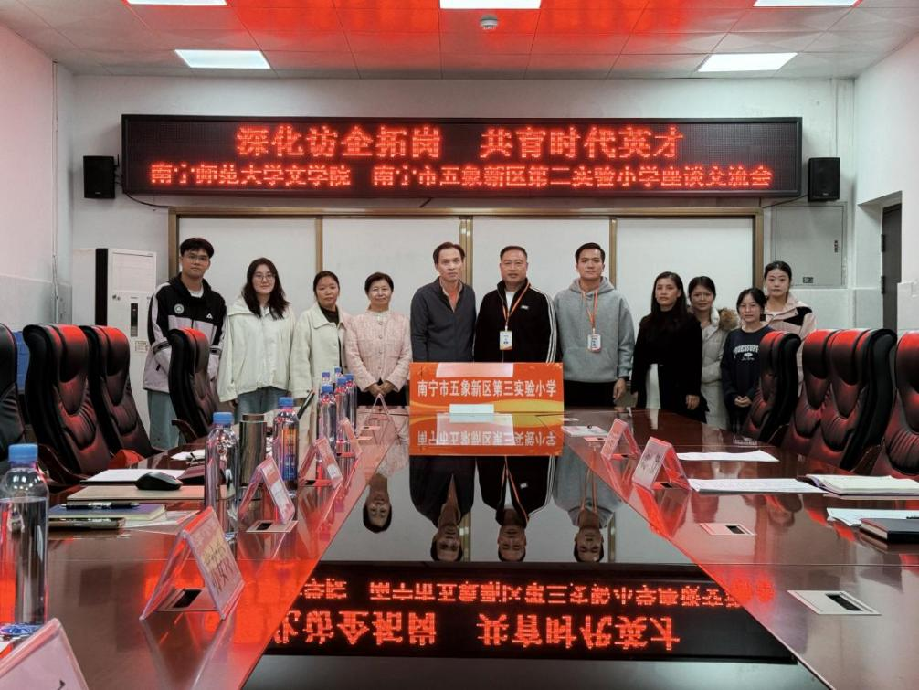 文学院师生首先参观了五象三小校园,了解学校办学环境与文化建设。在随后的座谈中,双方分别介绍了各自的办学概况、师资队伍建设及人才培养情况。文学院重点了解了五象三小对往届毕业生的使用评价、能力需求以及近期教师招聘计划与岗位要求,为今后人才培养与就业指导提供参考。