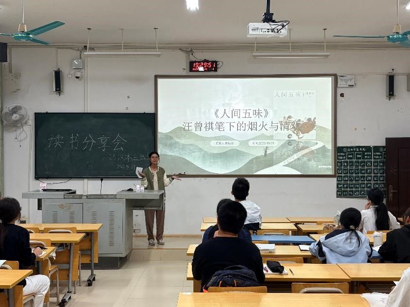 为营造浓厚班级阅读氛围,引导学生从书籍中汲取精神养分、提升文学素养,文学院2025级汉本三班于2025年10月29日在五综110教室举行读书分享会。