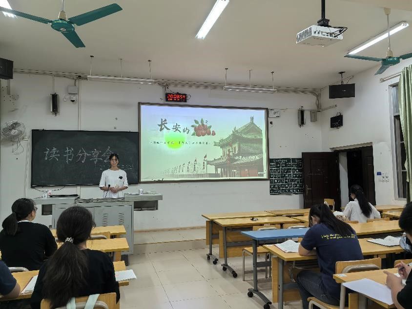 分享会上,许悦期同学以精美动态PPT为辅助,围绕《长安的荔枝》展开分享,深入拆解小人物在皇权背景下的挣扎与坚守,既通过视觉设计清晰呈现故事脉络,又以共情式表达传递平凡人的勇气,让在场同学沉浸式感受主角的绝境抉择;黄桂沂同学将《人间五味》中的烟火故事具象化,通过“酸”到“咸”的生活片段搭配温馨配图,以温柔且有力量的语调解读人生百态,让日常烟火气直抵人心;许家维同学分享经典著作《城南旧事》,在讲述书中老北京童年的经典段落时,以清亮舒展的朗诵演绎文中精彩内容,老北京的市井画面随声线铺展,童真与怀旧氛围愈发浓郁,成功将在场同学带入那段时光里的成长故事。