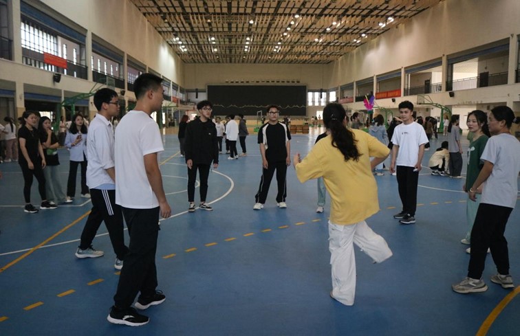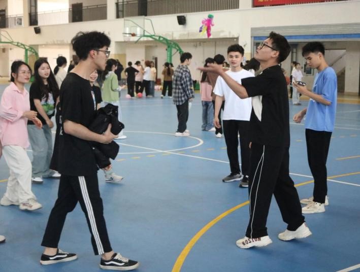 本次趣运会以班级为单位展开,共含四项趣味活动:踩气球、定点投篮、记忆宫殿和围圈踢毽子。在踩气球活动中,参赛队员们看准对手,果断行动,成功踩破对方的气球,讲究一个“快、准、狠”;在围圈踢毽子时,中越两国学生相互配合,充分锻炼了身体的协调性。现场欢声笑语此起彼伏,大家热情高涨,活力满满。