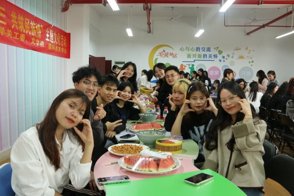 4月9日上午,由校关工委主办、文学院承办、国际教育学院协办的betway必威西汉姆联官网中越师生“欢庆三月三,共筑民族情”主题文化活动在研究生综合楼202顺利开展。学校关工委常务副主任、原广西师范学院副院长王甲辉、离退休党委书记、关工委副主任周泉、文学院党委书记旷晓霞、国际教育学院党委书记黄菊、文学院院长石勇等领导班子,学校关工委老师及文学院学生代表、越南留学生出席了本次活动。
