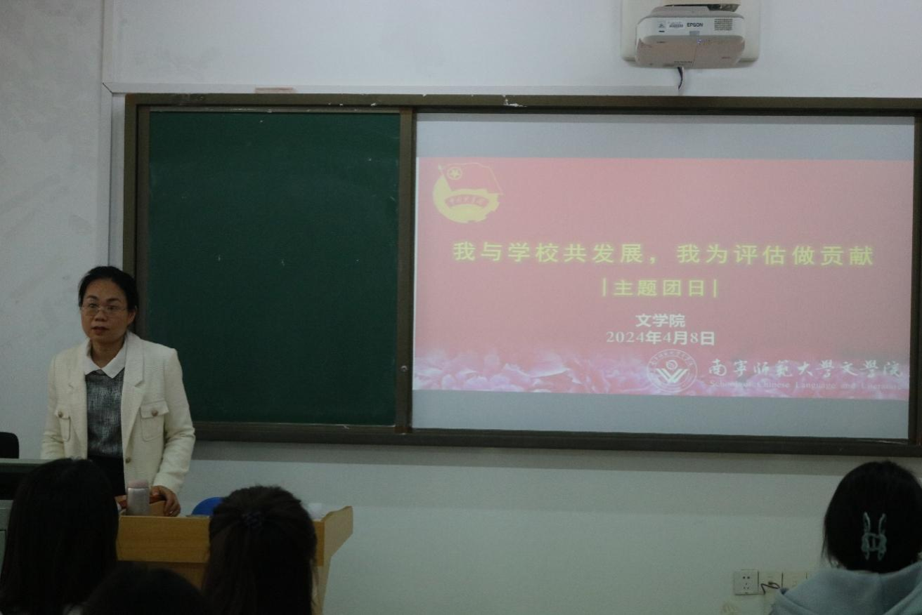 为帮助我院师生了解熟悉审核评估的基本知识,深刻领会评估工作的基本要求,文学院团委学生会于4月8日在文综楼413教室顺利举办“我与学校共发展,我为评估做贡献”主题团日活动。文学院辅导员沈珊珊,学生会各部门部长和各班团支书参与本次活动。