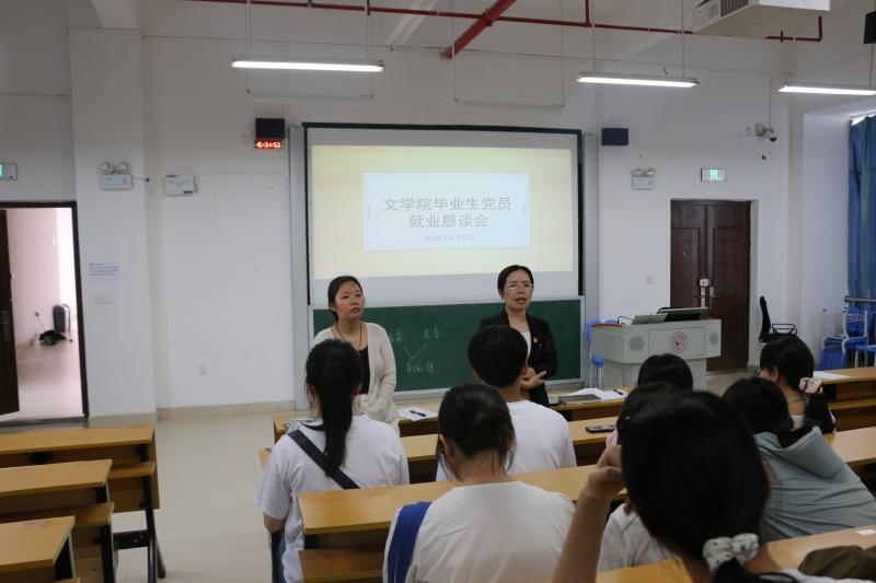 为促进文学院2024届毕业生就业,了解学院秘书学专业和戏剧影视文学专业学生的就业困难,发挥党员学生先锋模范带头作用,文学院于文综楼1013教室开展非师范生毕业党员就业座谈会。文学院党委副书记李树玲,辅导员罗茜出席会议,20余名党员学生参加座谈。