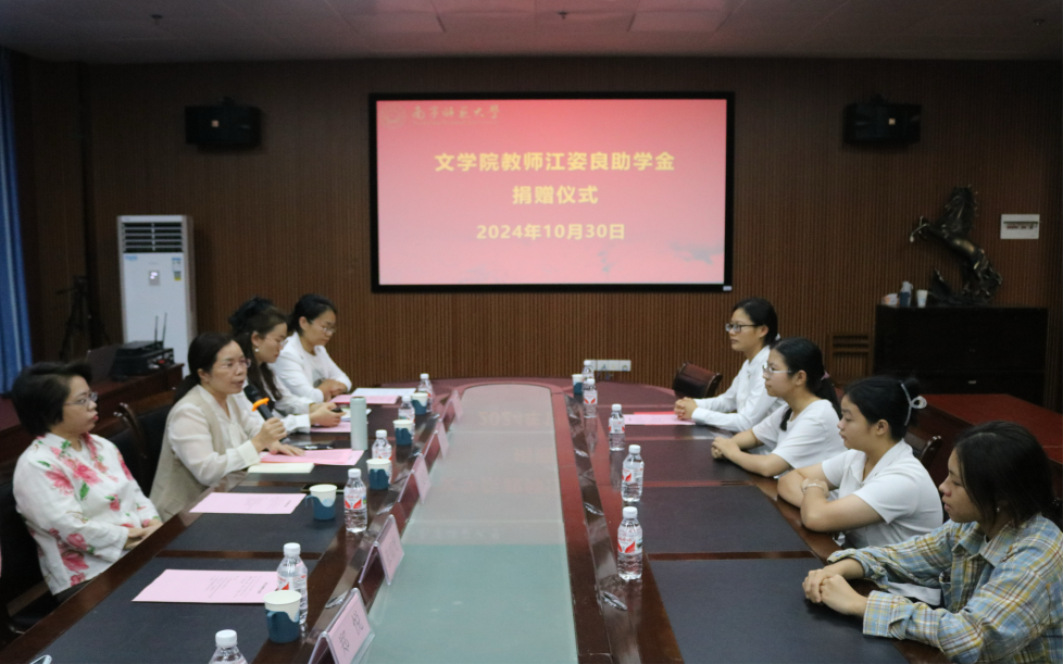 10月30日下午,文学院于404会议室举行江姿良教师助学金捐赠仪式。文学院党委副书记李树玲,教师江姿良,团委书记钟振花,辅导员罗茜、郑悦老师及24级学生代表参与仪式,辅导员沈珊珊主持。