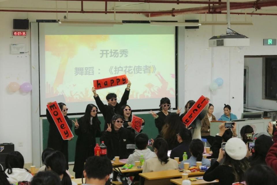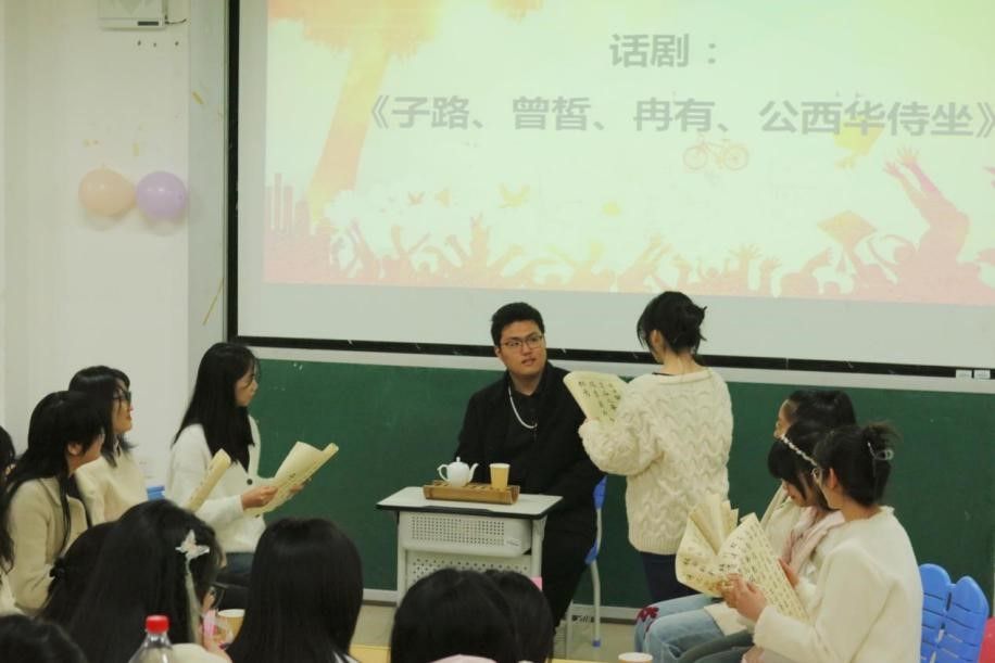 在晚会节目表演环节。九个精心准备的节目轮番上演,为同学们带来了一场视听盛宴。舞蹈《护花使者》展现了民俗学学子的青春风采,小品《甄嬛深陷抄袭风波》和《艰难抉择》则以幽默诙谐的方式,引发了大家对现实问题的深刻思考。朗诵《月光下的中国》和《写给未来的你》用深情的语言,表达了对祖国的热爱和对未来的憧憬。歌伴舞《千年游》和歌曲串烧《平凡之路+稻香+少年》则以动人的旋律和优美的舞姿,赢得了观众的阵阵掌声。话剧《子路、曾皙、冉有、公西华侍坐》更是将古代文学的经典篇章搬上了舞台,让观众在欣赏表演的同时,也领略到了古代文化的博大精深。