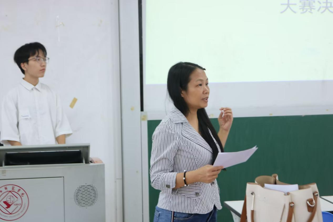 为培养师范生教学创新能力,提升综合素养,2024年10月26日下午,文学院于文综楼401教室举办了师范生教学技能大赛决赛。文学院教师韦美日、于钟民、朱冬夏、黄铮、黄斌、王毅出席本次比赛并担任评委。