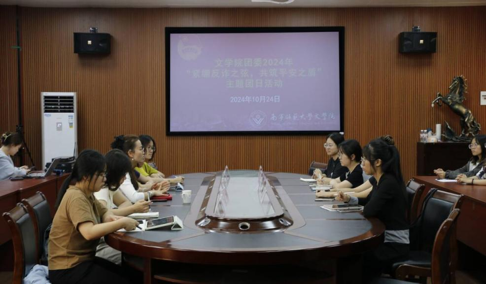 为提高大学生反诈意识,提升防诈能力,10月24日下午,文学院于理科综合楼404会议室开展“紧绷反诈之弦,共筑安全之盾”主题团日活动。本次活动由团委书记钟振花主持,团委学生会常委、各部门负责人参加。