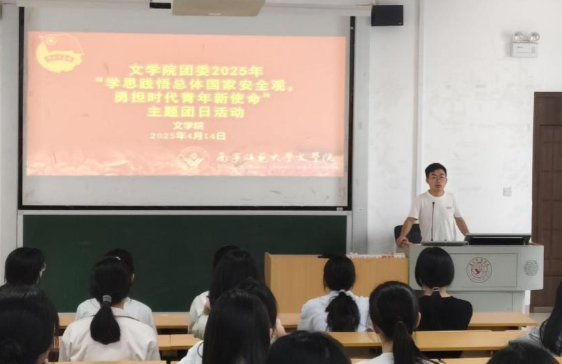 4月14日中午,文学院团委于文科综合楼811教室开展“学思践悟总体国家安全观,勇担时代青年新使命”主题团日活动。本次活动由文学院辅导员韦亮亮主持,24汉本一班全体同学参与。