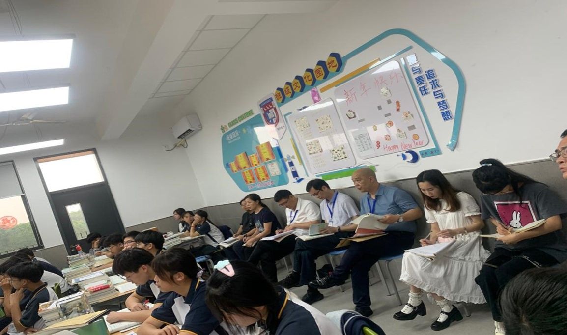 随后,石勇院长深入课堂,观摩了实习生代表杨圆圆上的汇报课。课后,由乐知新学道高级中学语文教研组负责人曾超老师主持,在学校会议室进行了评课活动。各年级语文教师代表对杨圆圆同学的课堂教学各环节的表现及亮点进行了点评。特级教师钟健老师在点评时,对杨圆圆在备课时能虚心听取意见,以及课堂上表现出的扎实专业功底予以肯定。