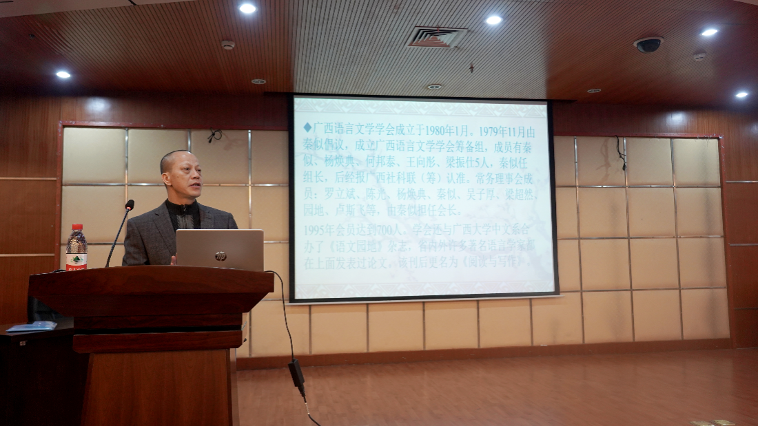 (广西语言文学学会副会长兼秘书长、betway必威西汉姆联官网文学院陈祖君教授进行专题报告)
