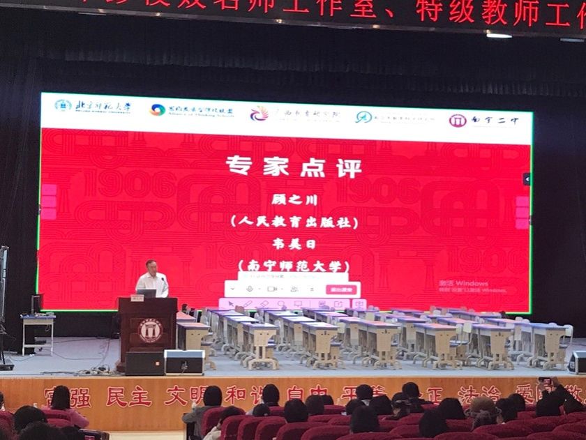 人民教育出版社编审顾之川教授和betway必威西汉姆联官网韦美日教授对两节课进行点评。人民教育出版社顾之川教授用三句话表达了自己的听课感受,高度肯定了两位老师展现的现场课例。顾教授指出高中语文教学是在小学初中教学的基础上拓展阅读的宽度、表达的厚度和思维的深度与广度。教师要引导学生多读书、勤思考、勤练笔、多实践,多实践就是把书本的语言和社会生活实践结合起来。培养学生享受阅读、乐于表达、勤于思考、自主学习的四个好习惯。韦美日教授用一句“指向思维品质提升的作文课程”来总评了二中的作文课。韦教授从高中课标中的作文教学出发,对两节课例“真作文”中的思维类型和品质进行了深入浅出的分析,并提出了五条在作文教学中灵活运用提高思维品质的方法。最后,韦教授相信教学有法,教无定法。不同个性的师生,会创造出不同的充满个性的教学方法,有效提升学生的思维品质。