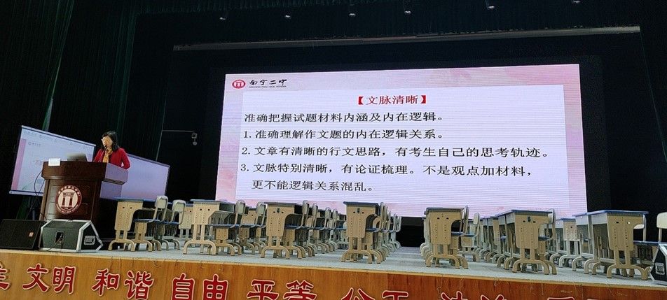观影后,彭俊姣老师做了题为“‘双新’背景下的作文教学”报告。彭俊姣老师针对作文教学中存在的问题,从课标出发揭示了学生写作成长的密码,并提出了切实可行的作文教学建议。