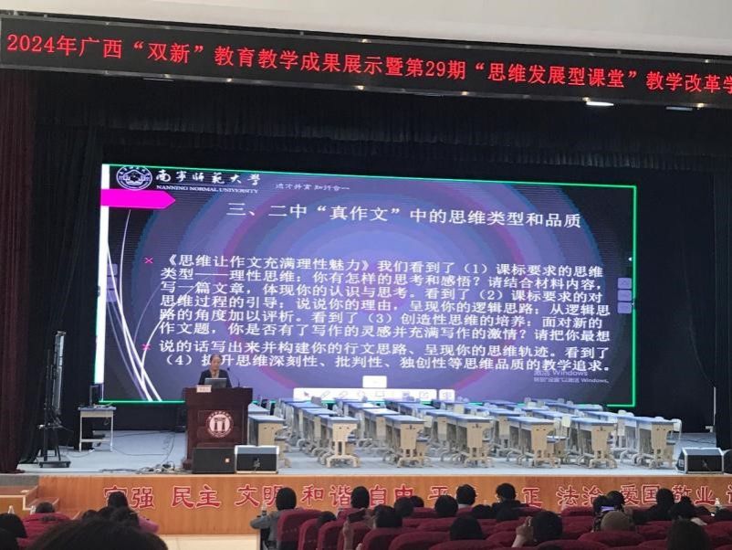 11月19日,2024年“双新”改革成果展示暨“思维发展型课堂”教学改革学术研讨会在南宁市第二中学凤岭校区召开。学院韦美日教授、班主任韦亮亮带队携文学院227名师范生参加了此次研讨会。