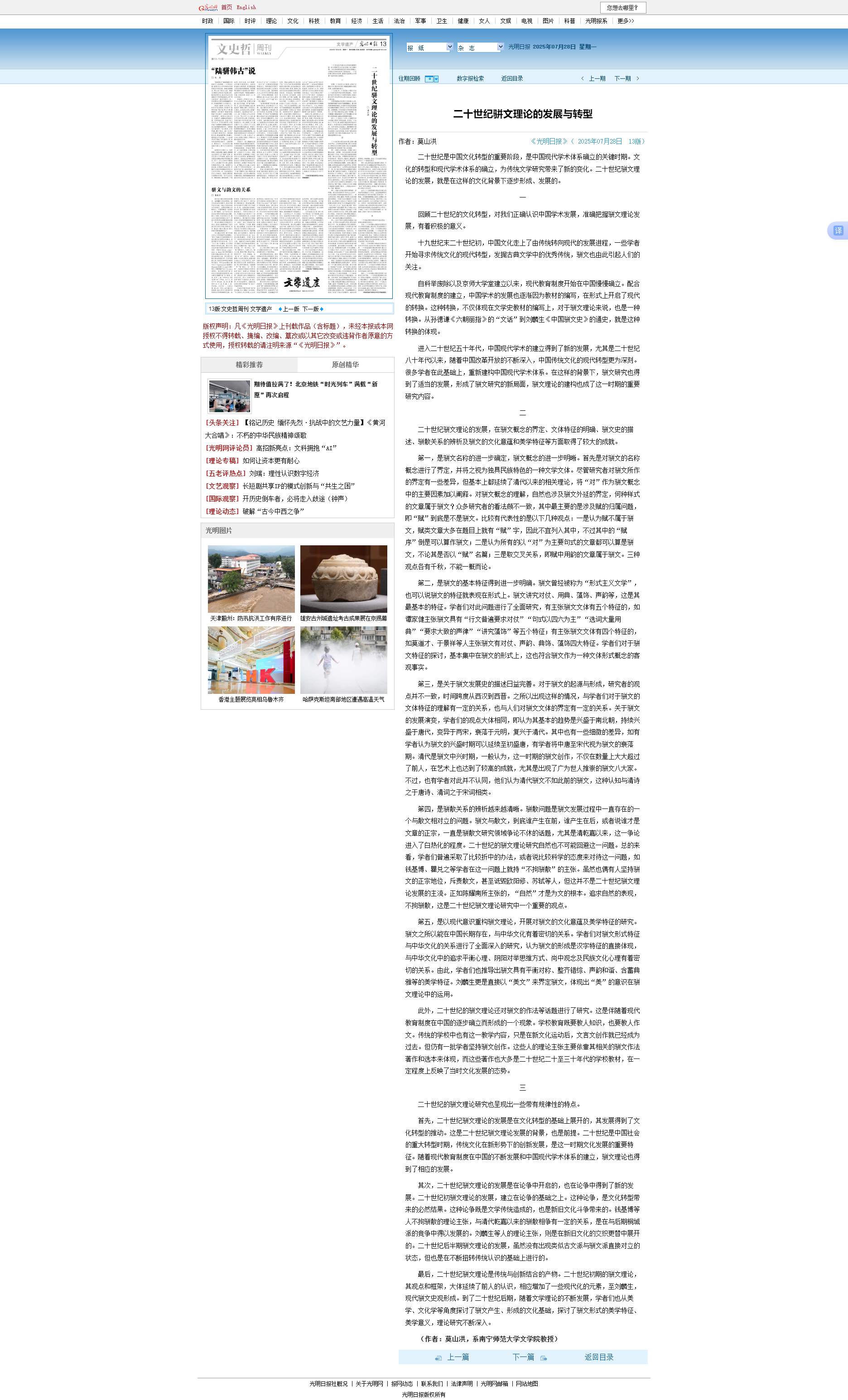近日,我校文学院莫山洪教授的理论文章《二十世纪骈文理论的发展与转型》,在《光明日报》(2025年07月28日13版)上发表。这是莫山洪教授在骈文学史领域坚持长期深耕细作的硕果,也彰显了我校中国语言文学学科建设成效。我们将以此为契机,充分发挥人才引领作用,推动中国语言文学学科深入发展。