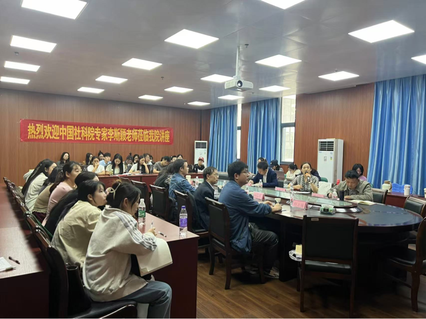 2024年11月20日下午,中国社会科学院民族文学研究所的李斯颖老师受邀前来我校文学院讲学,为师生们带来了关于壮族布洛陀史诗研究进展的专题报告。讲座在五合校区文学院会议室举行,由我校文学院副院长林安宁老师主持,文学院民间文学教研室老师和文学院民俗专业、少数民族文学专业研究生聆听了讲座。