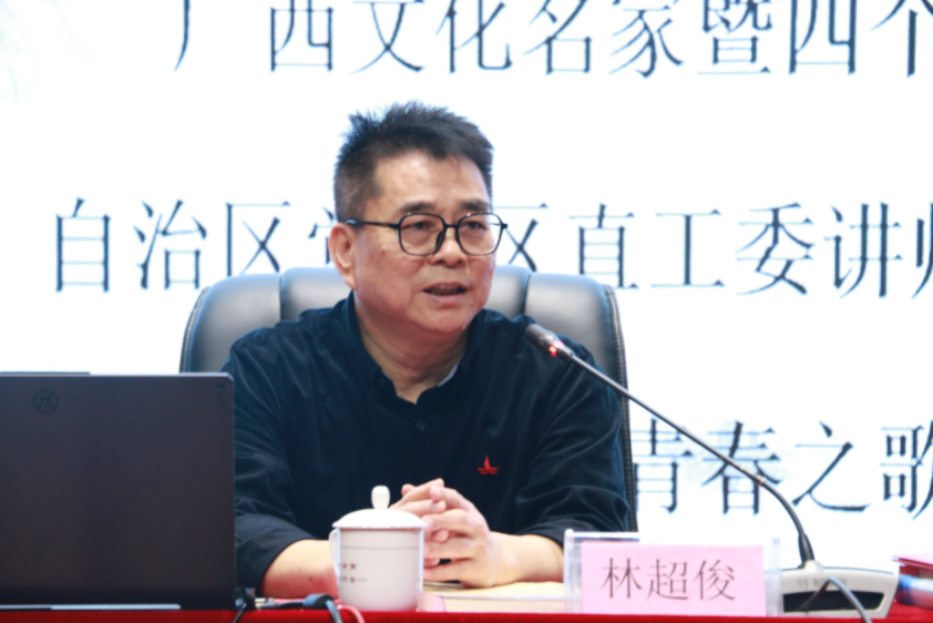 聘任仪式结束后,林超俊秘书长为到会师生作了题为奋斗的青春更壮美——时代楷模黄文秀的人生启迪报告。报告中,他结合自己的创作,“学文秀  悟优秀”、“学文秀  当优秀”、“学文秀  传文化”、“学文秀  不作秀”、“学文秀  增本领”以及“做奋发有为的当代大学生”六个方面向我们讲述了黄文秀的15个生动故事,并和大家探析传承优秀传统文化的重要价值。在互动环节,同学们积极提问,林超俊秘书长给予了详细和耐心的解答倡导同学们要将课堂中学到的知识和报告的内容进行融会贯通,心中有阳光,脚下有力量,他希望同学结合专业特长,认真领会、理解和学习黄文秀精神,争做有理想、有担当、有本领的“黄文秀式好青年”。