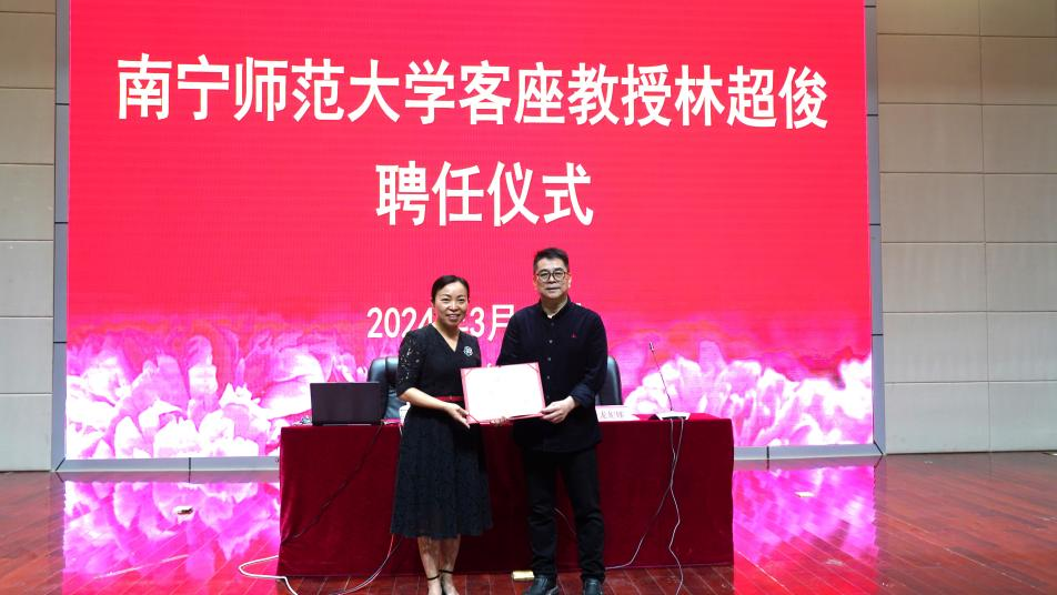 聘任仪式上,学校副校长龙妮娜林超俊秘书长颁发客座教授聘任证书并致辞。她向大家介绍了林超俊秘书长的基本情况和主要成就,并代表学校感谢林秘书长对学校建设发展的关心和支持。龙副校长表示,林秘书长是戏剧、影视方面导演方面的专家,获得过国内外多项大奖,希望林秘书长的加盟能为我校提升教育教学质量、培养符合新时代需要的戏剧影视文学专业优秀人才提供指导和帮助。