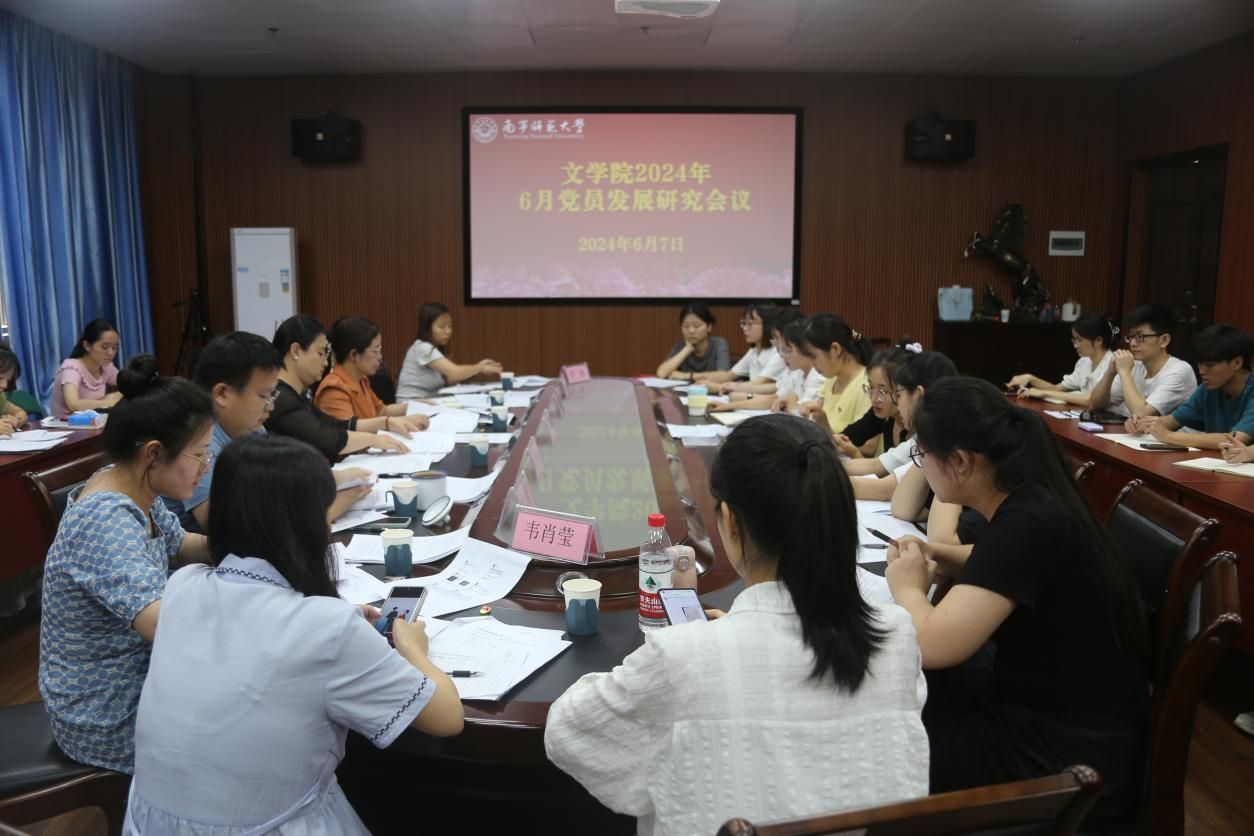 2024年6月7日,文学院在理综404会议室召开2024年上半年党员发展研究会议。文学院党委书记旷晓霞、党委副书记李树玲、全体辅导员及各学生党支部书记参加了会议。