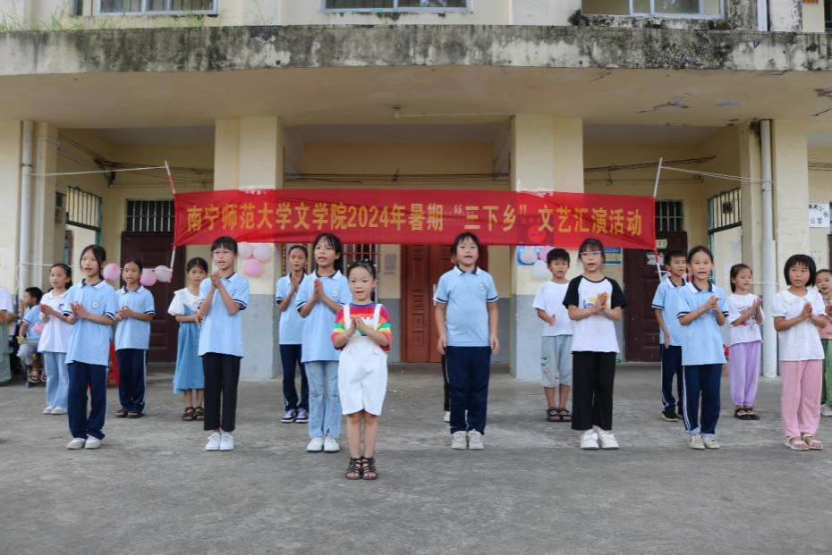为展示betway必威西汉姆联官网文学院“晨曦”推普助力乡村振兴服务团支教组课堂教学成果,文学院暑期“三下乡”社会实践活动文艺汇报演出于7月15日马山镇中心小学举行。本次汇报演出由“三下乡”团队成员们与第二课堂兴趣班的学生们共同出演,并邀请学生家长和马山镇的父老乡亲们一同出席观看。
