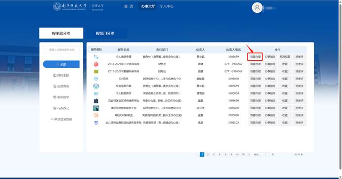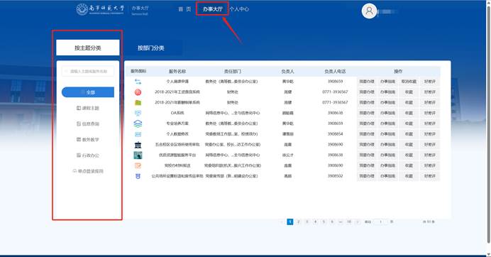 点击办事大厅按钮,进入办事大厅,根据左侧服务主题可快速定位到需要办理的服务类型