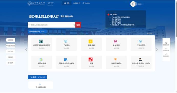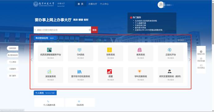 已收藏的服务会出现在首页的个人常用列表中,可以通过点击该服务进行快速跳转