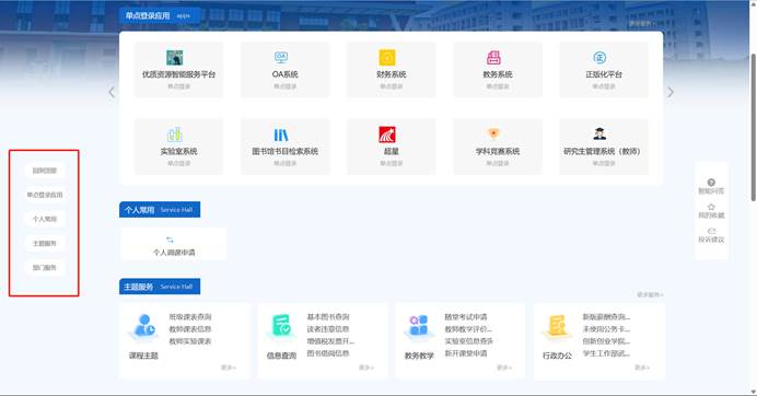 2.2.下拉首页或点击左侧锚点,可通过主题服务模块及部门服务进行服务办理
