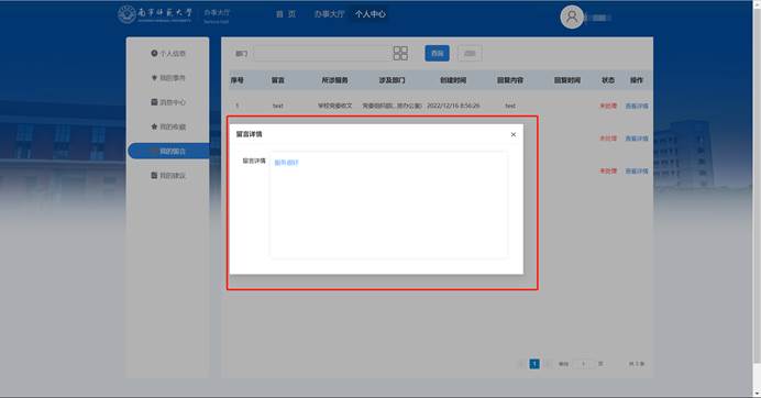 4.4.在我的留言,用户可以对服务办理时发起的留言进行管理